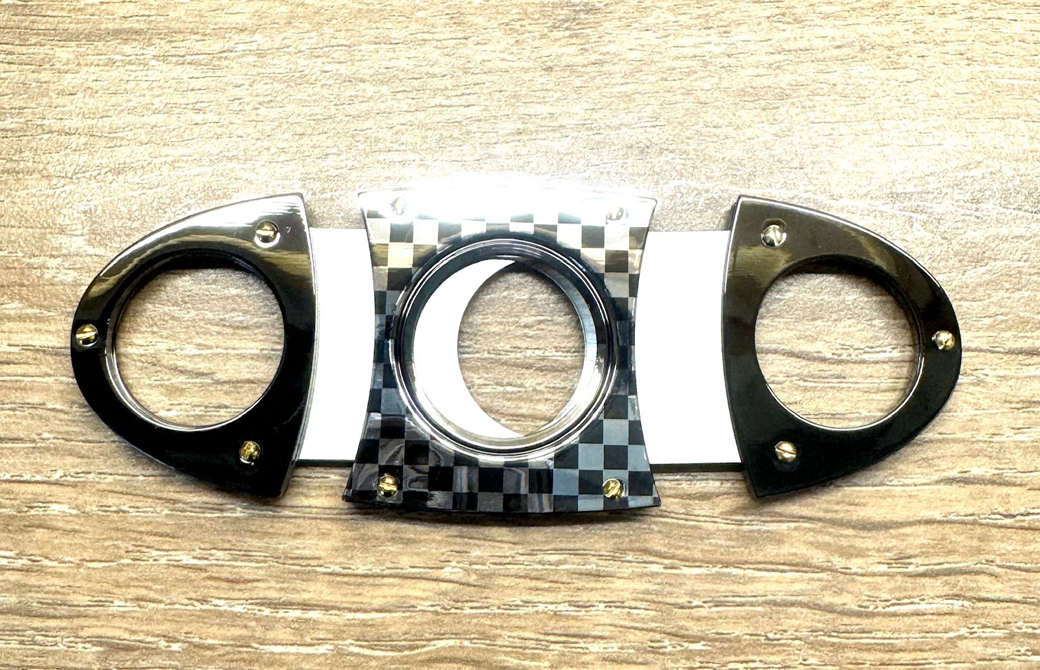 Oval Ended Cigar Cutter Chrome Black & White Check